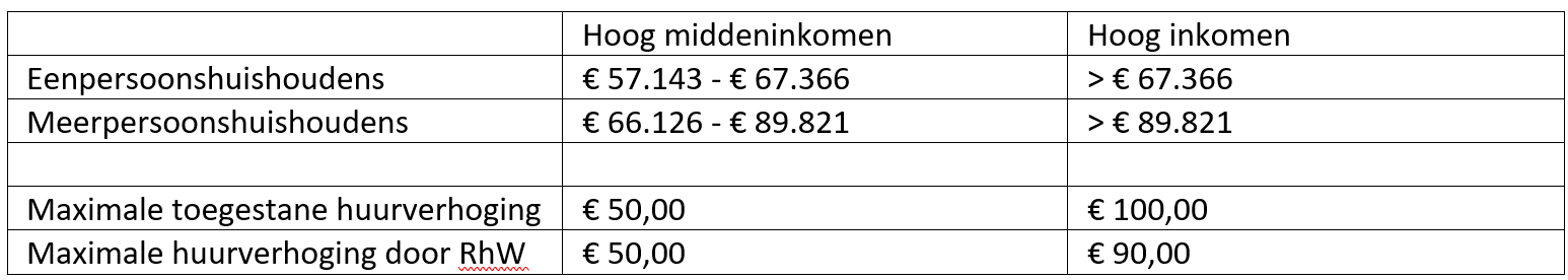 Hiervoor kijken we naar de hoogte van uw inkomen. Huurders met een midden hoog inkomen krijgen een lagere huurverhoging dan huurders met een hoog inkomen. De Belastingdienst geeft aan ons de inkomensgroep door.