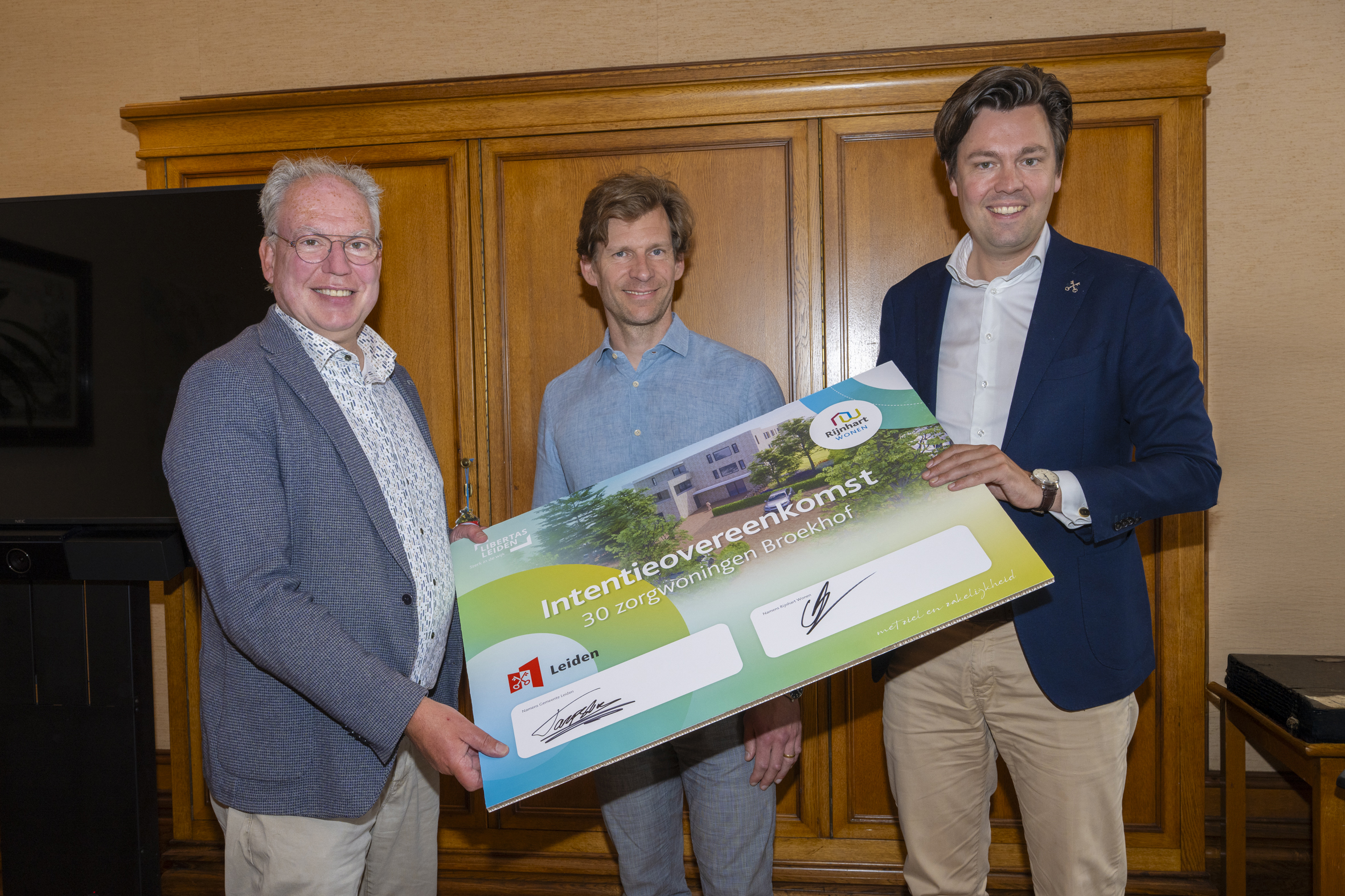 Op donderdag 19 juni ondertekenden gemeente Leiden en woningcorporatie Rijnhart Wonen een intentieovereenkomst voor de ontwikkeling van het project Broekhof. Samen met zorgorganisatie Libertas Leiden willen zij op deze locatie in Leiden 30 zorgwoningen realiseren voor ouderen met dementie.