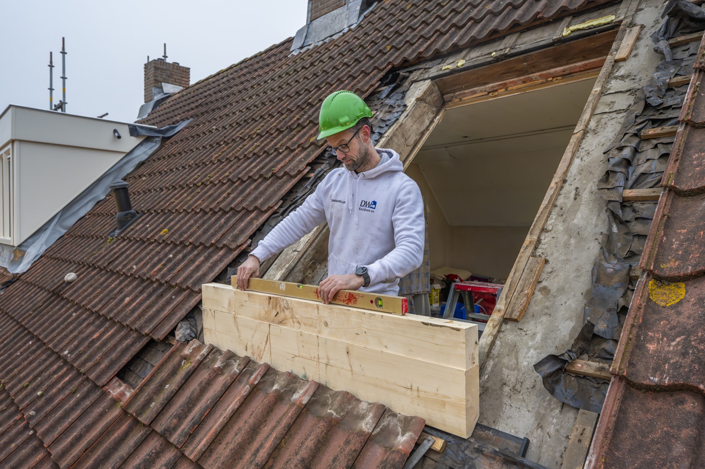 De daken van de woningen worden van buitenaf geïsoleerd. De oude dakpannen worden vervangen. Onder de nieuwe dakpannen komen isolatieplaten. Ook plaatsen we nieuwe dakgoten. Daarnaast vervangen we de voordeuren door nieuwe die goed geïsoleerd zijn. “Zo blijft de warmte beter binnen. Dat zorgt voor meer comfort”, vertelt projectleider Richard van Zwet. In de kozijnen en ramen plaatsen we HR++ glas. En de bestaande dakkapellen vervangen we door goed geïsoleerde dakkapellen.