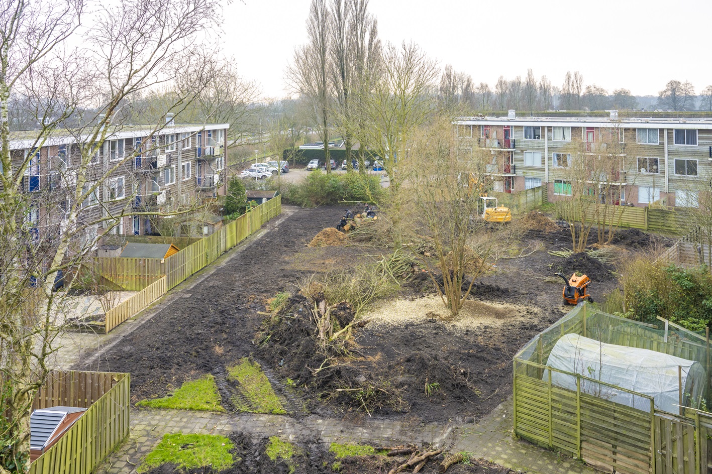 In Voorschoten werkt Rijnhart Wonen samen met hovenierbedrijf Balkenende aan een bijzonder groenproject bij het Aletta Jacobsplantsoen. Wat eerst een overwoekerde tuin was, wordt nu een circulaire en duurzame binnentuin.