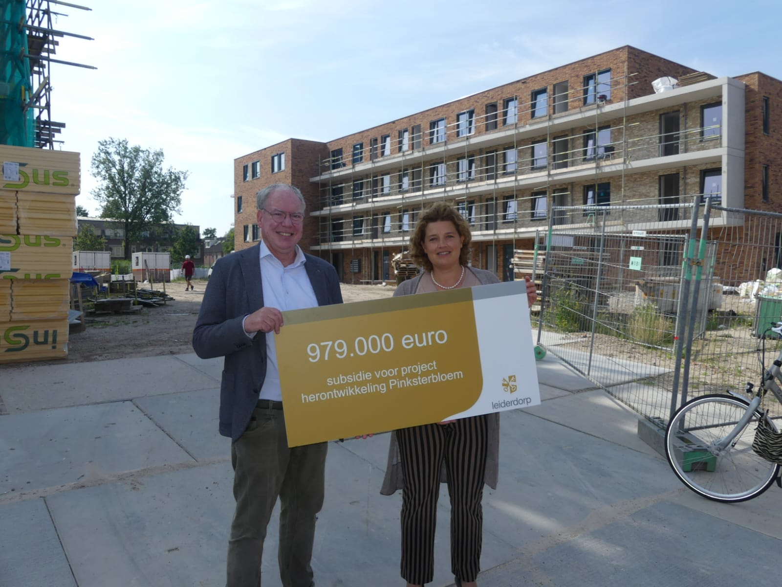 Gemeente Leiderdorp overhandigt cheque van 979.000 euro voor nieuwbouw Pinksterbloem